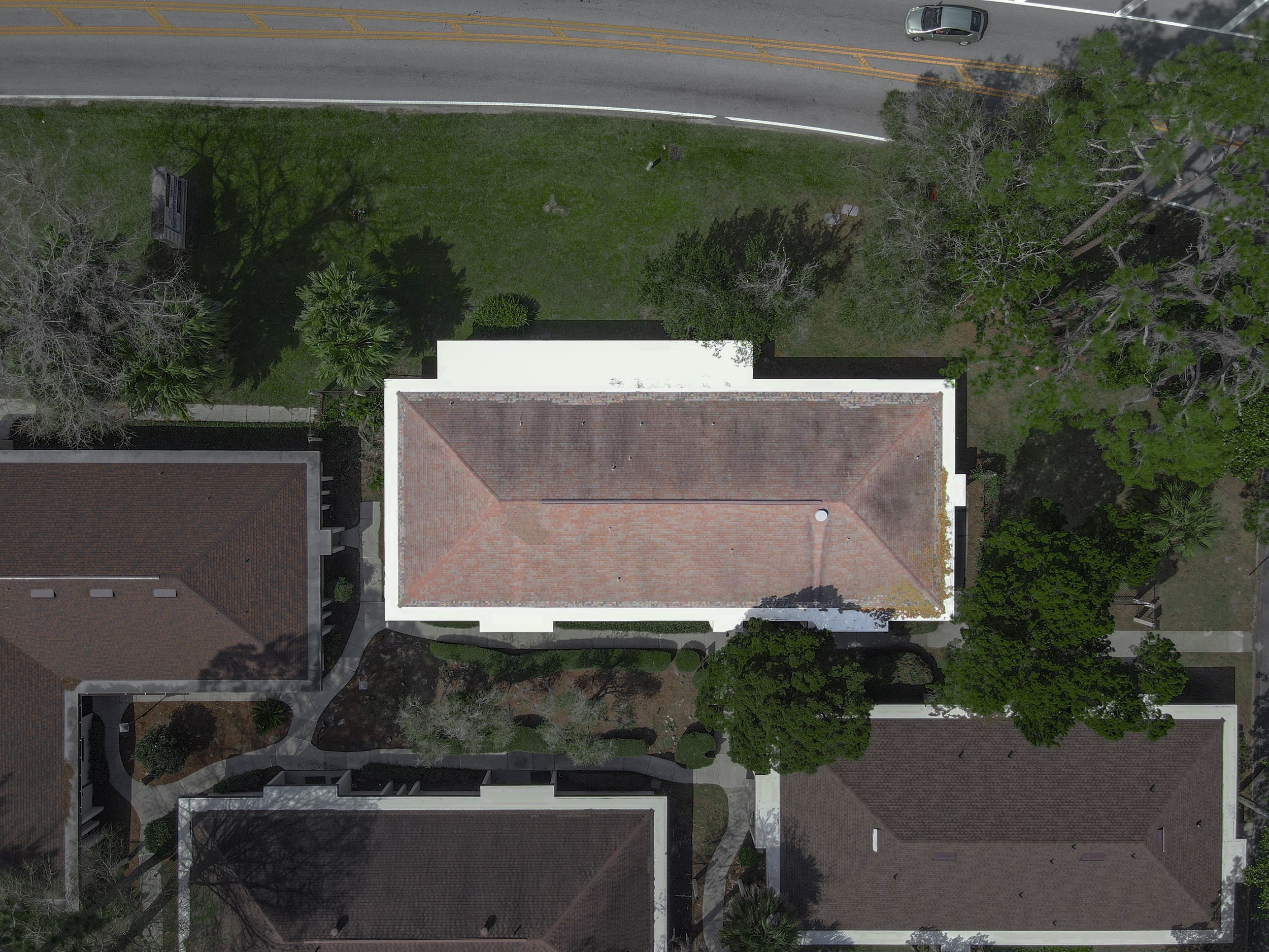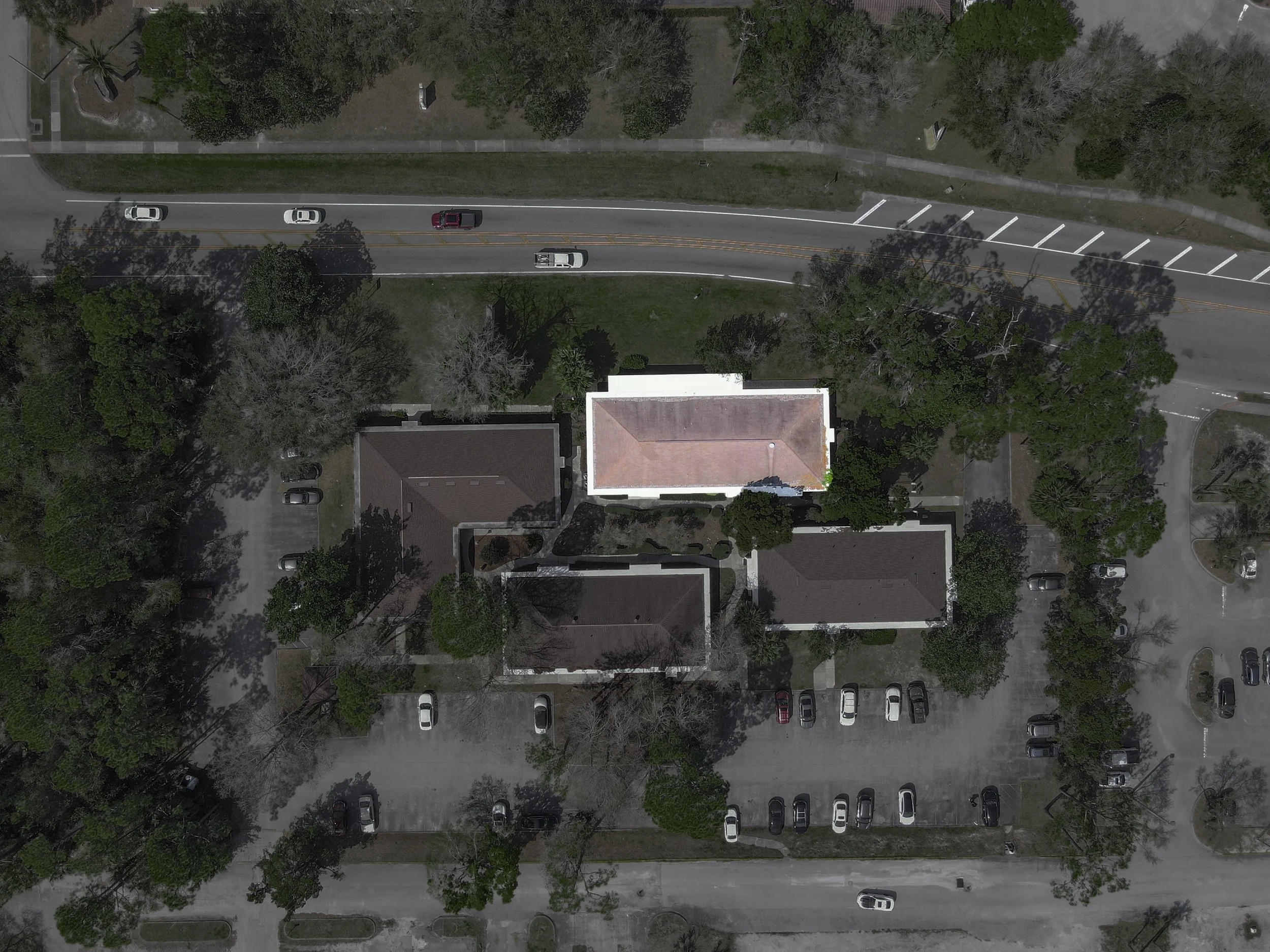 Concrete foundation. Central HVAC. Pitched roof (brand new). 4.33/1,000 SF parking ratio.