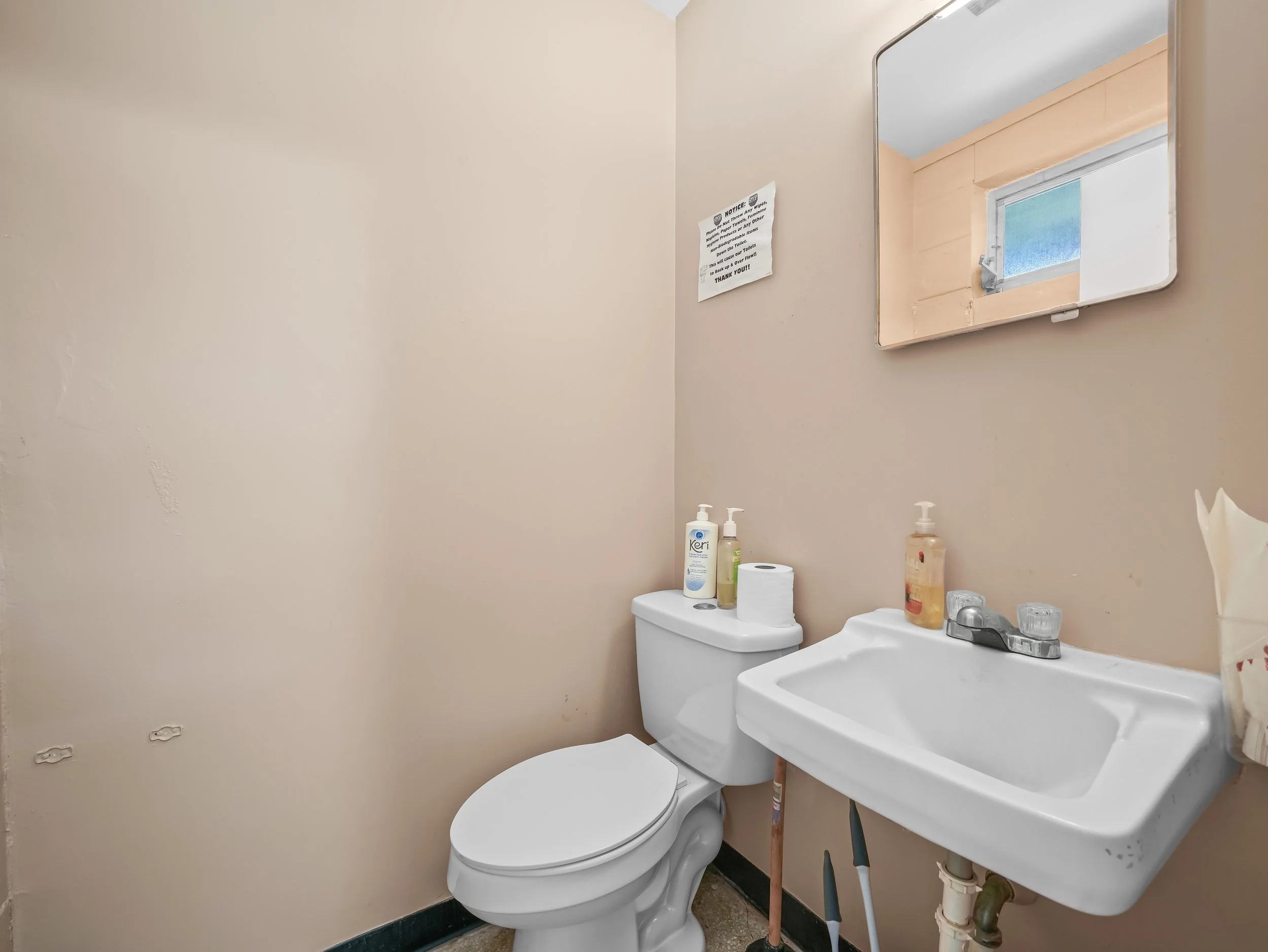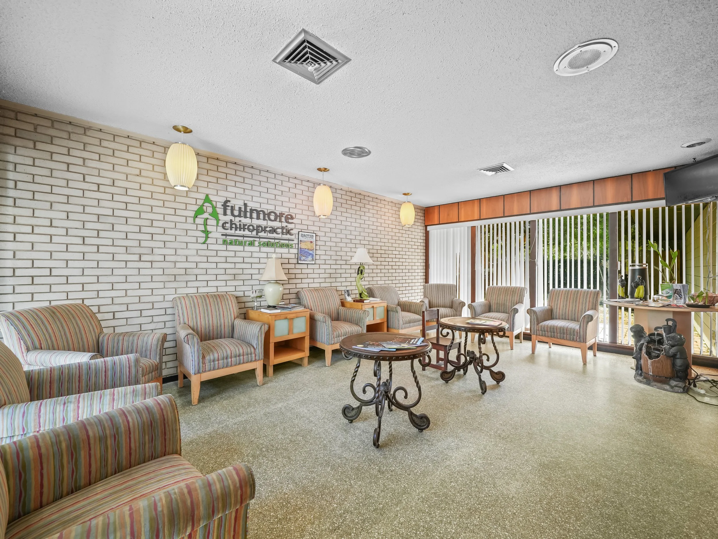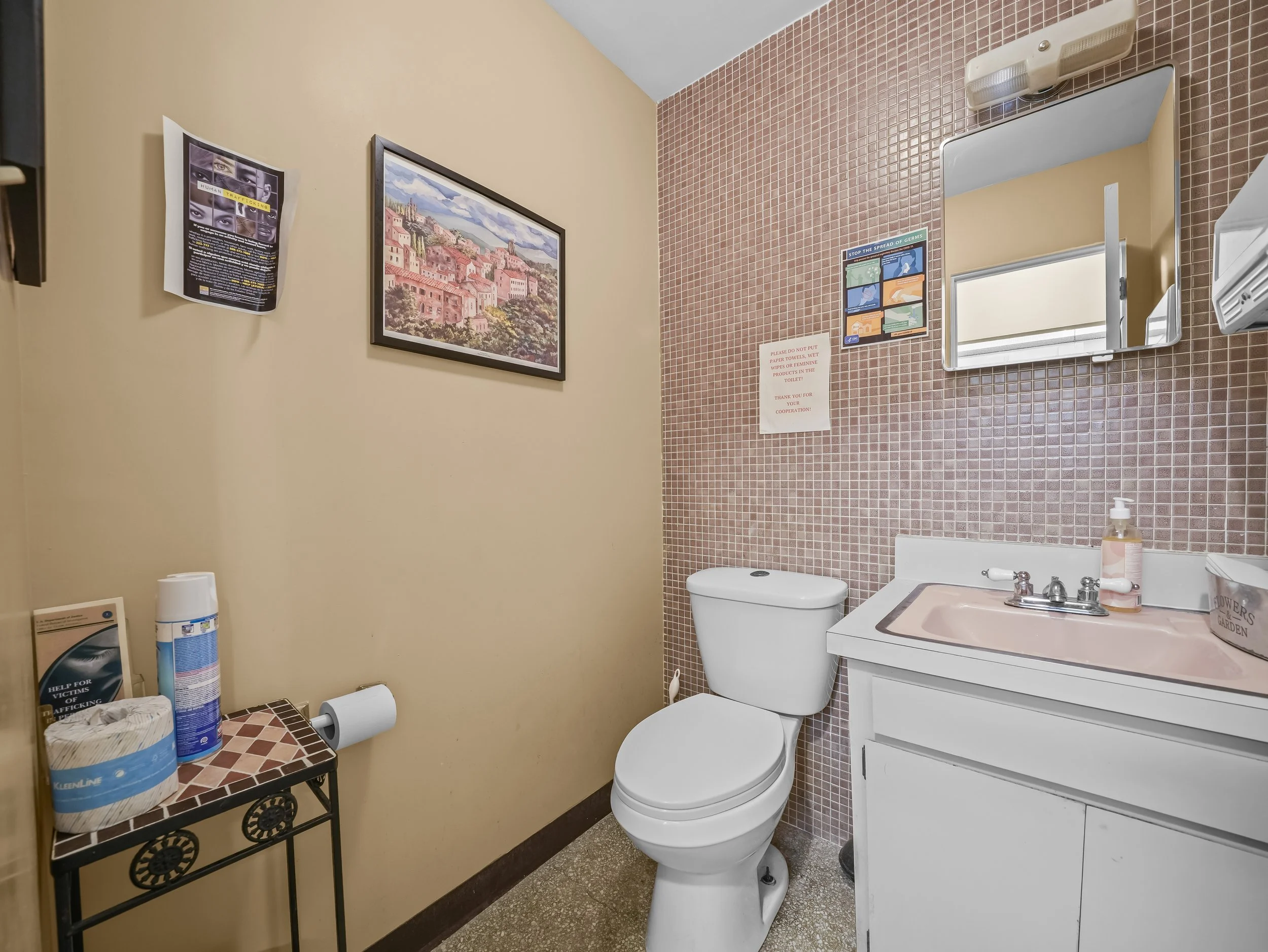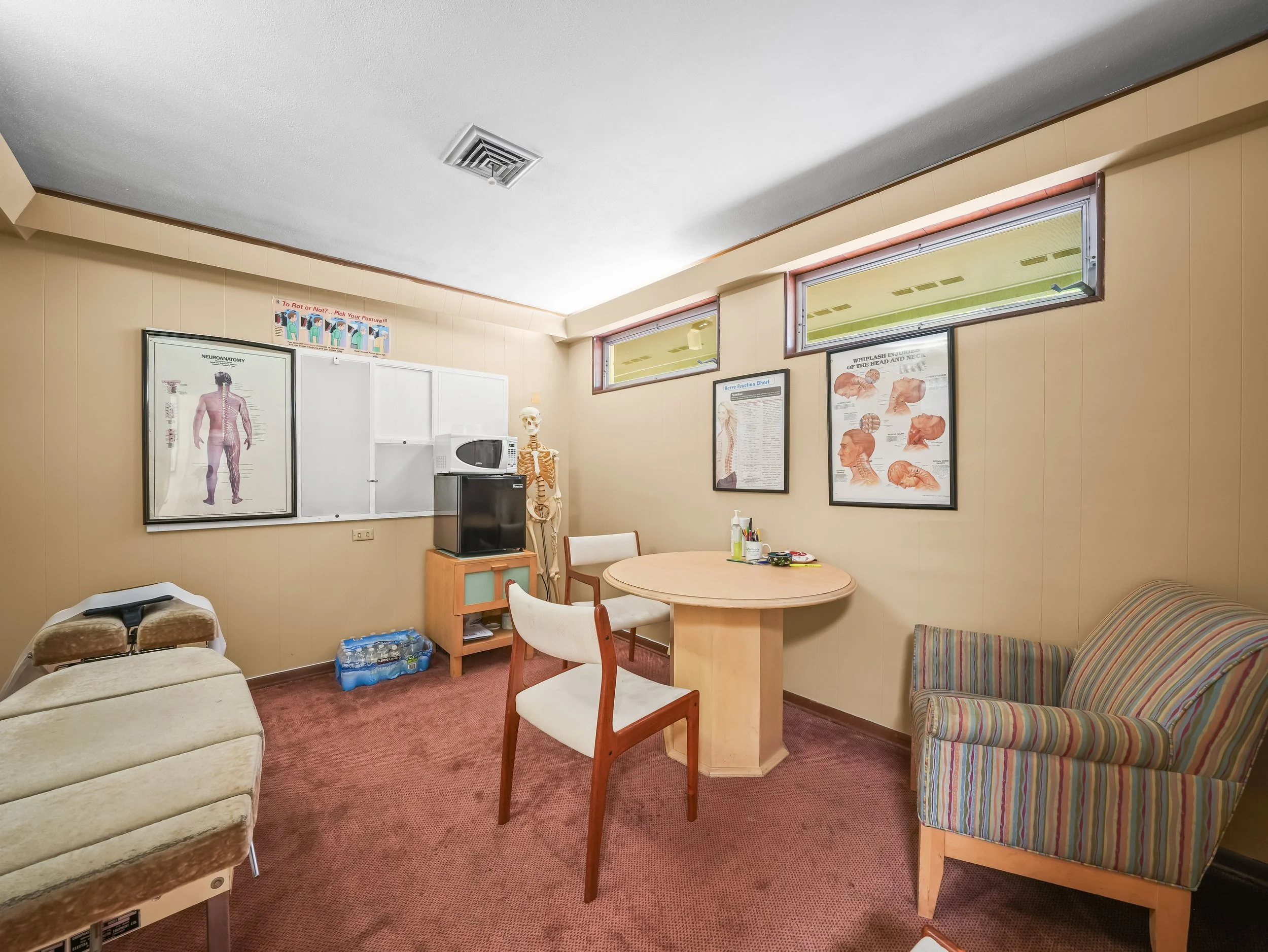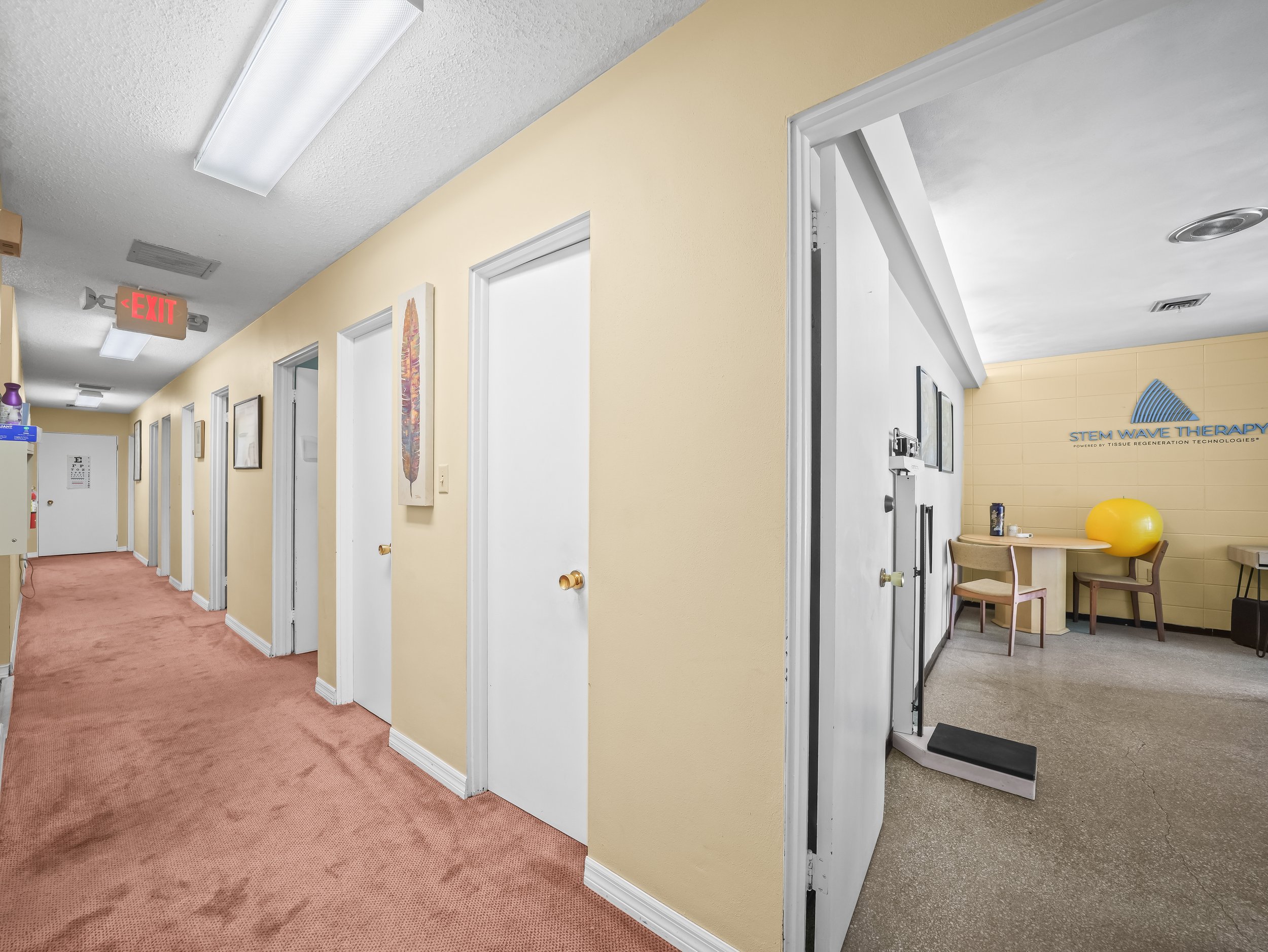 1 patient reception area 2 bathrooms (1 in the front of the office by the reception area and one in the back by the rear entrance and doctor’s office)