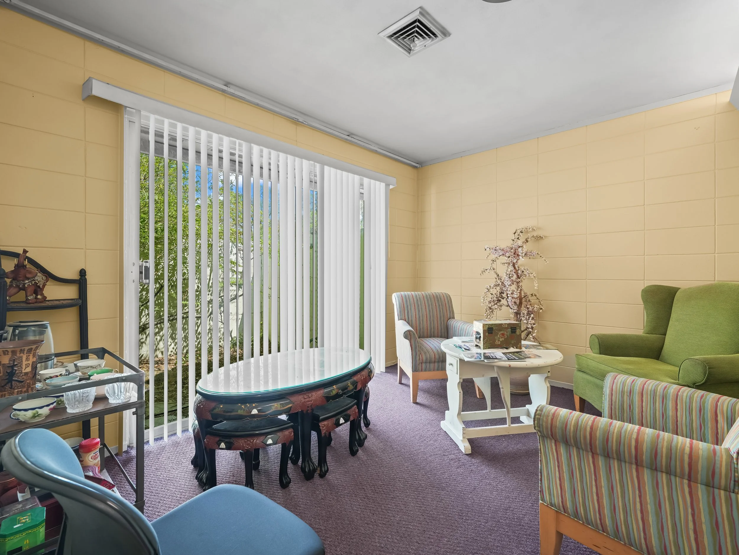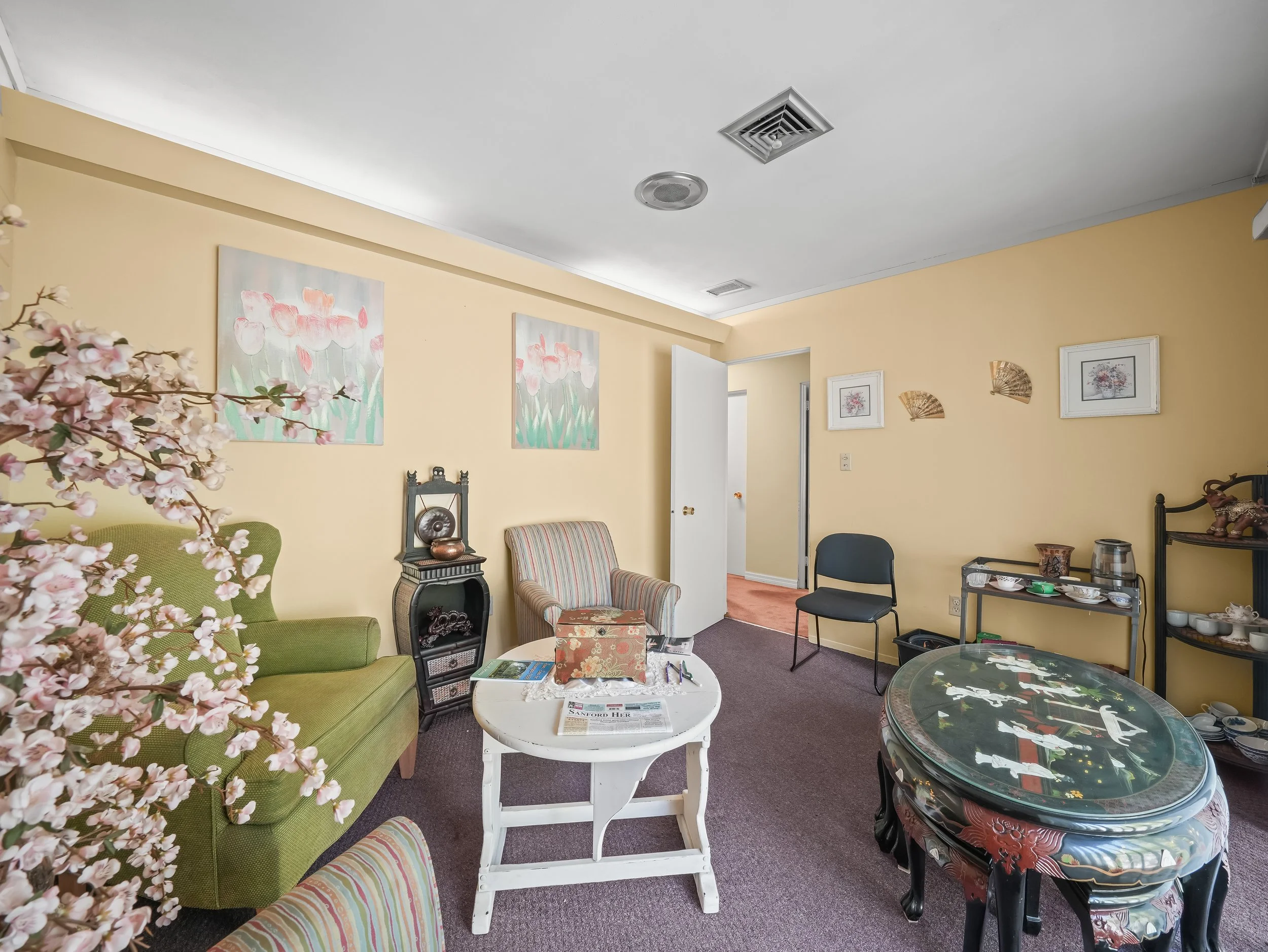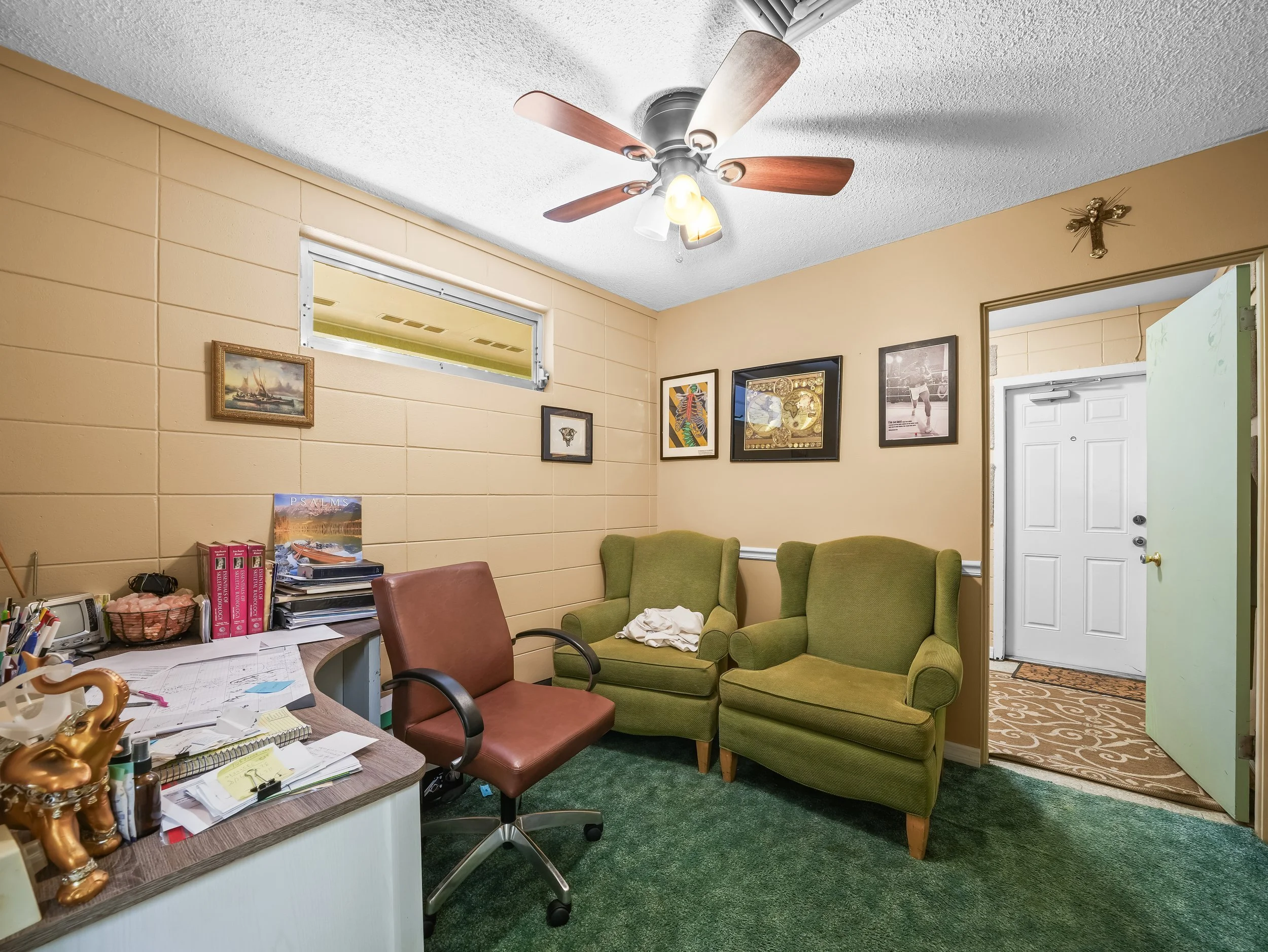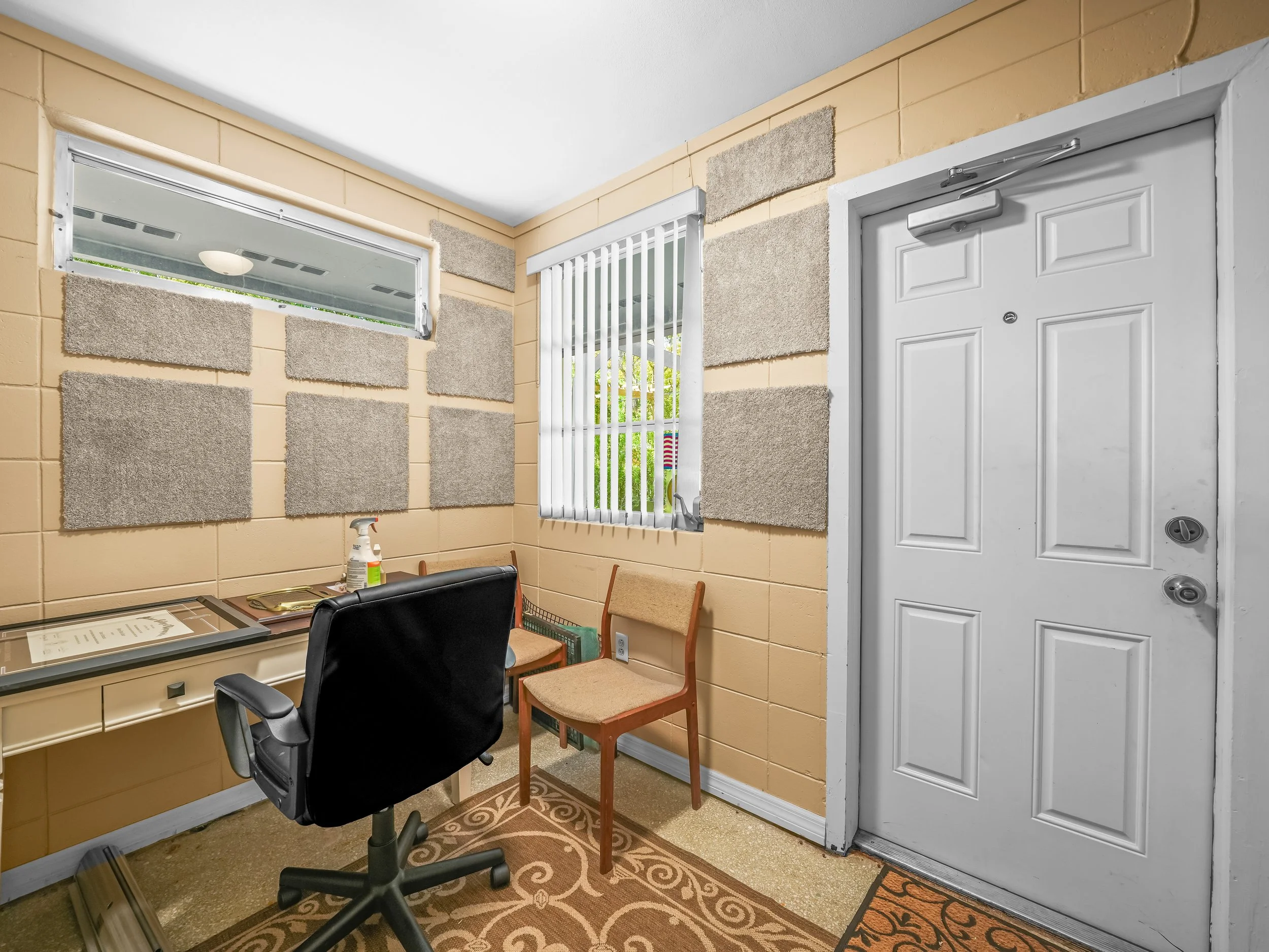 Three offices have natural light and two of three have large sliding doors